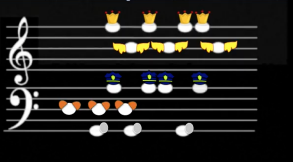 ¡DIBUJA TODOS LOS PERSONAJES CON SUS OBJETOS CARACTERÍSTICOS EN LA PARTITURA!